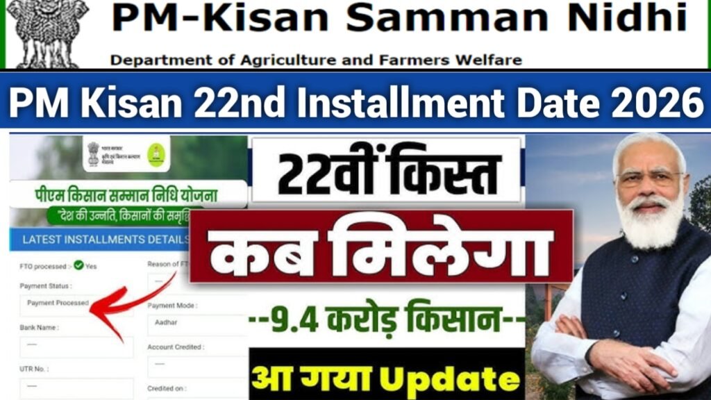 PM Kisan 22nd Installment Date 2026: The Pradhan Mantri Samman Nidhi Yojana (PM_Kisan) is a central government scheme provide financial