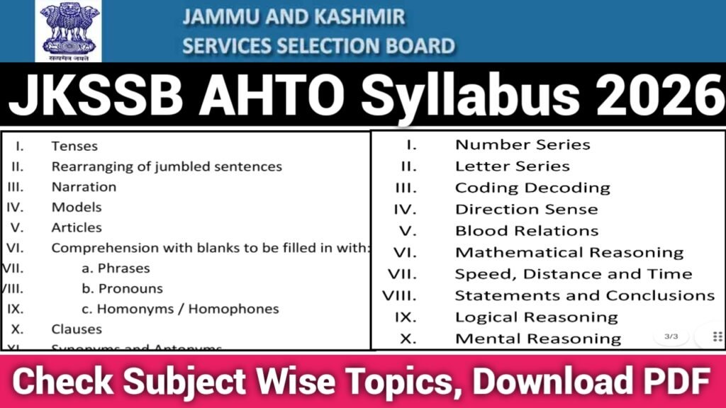 JKSSB AHTO Syllabus 2026: The Jammu and Kashmir Service Selection Board has advertised 390 new vacancies in various departments. These