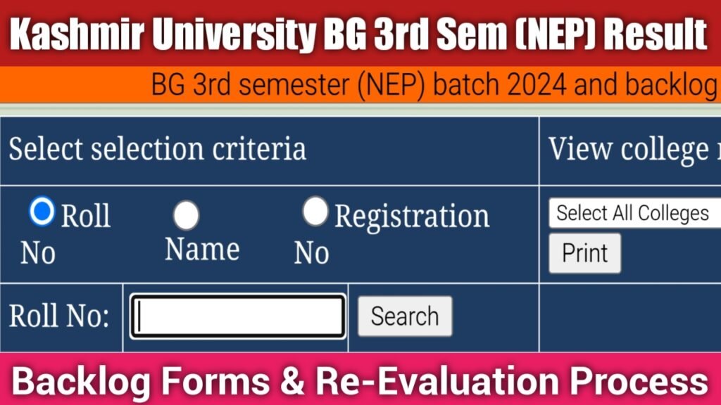 Kashmir University BG 3rd Sem Result 2025: The University of Kashmir has declared the result of UG 3rd semester (NEP)